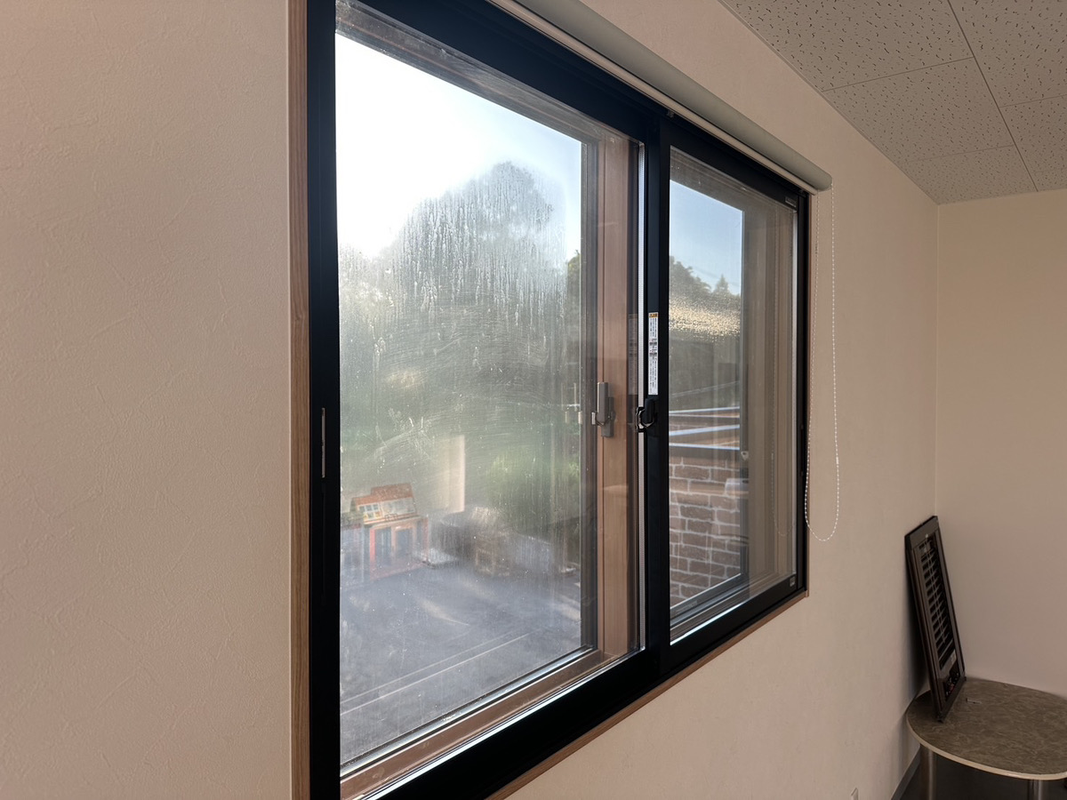 ↓当社の内窓を設置した窓です。内側には結露せず、屋外側に水滴がついています。