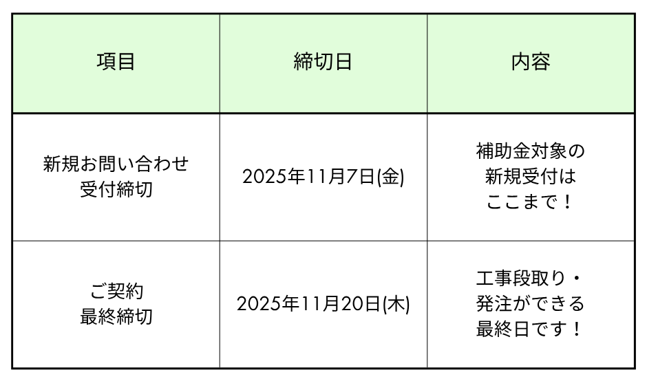 🪟【重要なお知らせ】補助金対象の新規お問い合わせは「11月7日(金)」で受付締切!