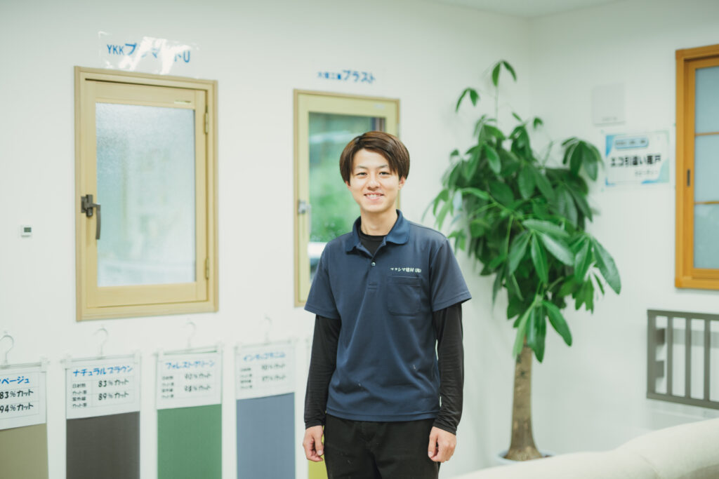 【木村】はい。仕事面で行くと、頑張りや評価がしっかりと給料などの待遇面に反映されるので、とても頑張り甲斐があります。また、「フクシマ建材」は「窓・玄関専門」という明確な専門性を強みにしていて、5つ以上のメーカーの商品から横並びに比較して選ぶことができます。だからこそこちら側もお客様に多様な提案ができます。それに、当社では最初の打ち合わせから現場調査、施工まで同じ担当者が行うので、社員は皆、商品知識と工事技術の両方を持っています。なので、お客様の疑問にその場で答えられるのも強みです。