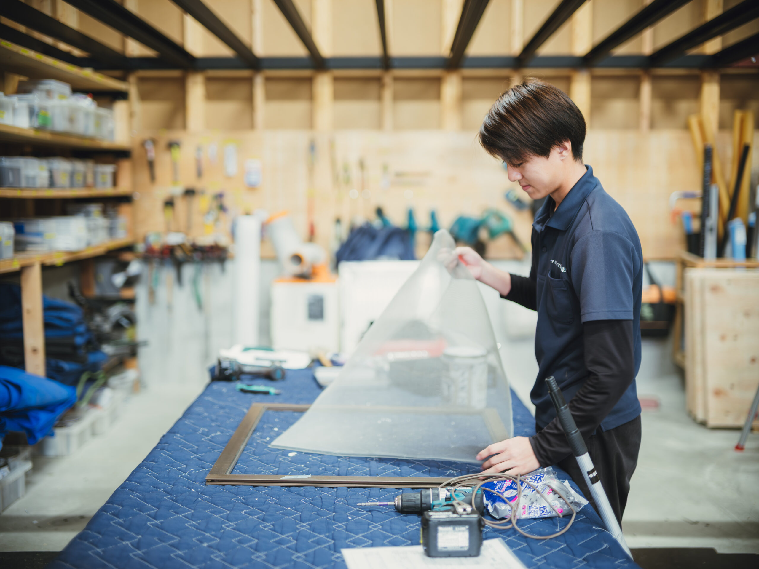 【木村】そうなんです。今まで電動ドライバーも持ったこともなく、専門技術・知識はゼロからの状態。最初は先輩について、最も基礎的な内窓の工事を指導してもらいながらOJTで覚えていきました。もちろん、現場だけで技術が身につくわけではないので、空き時間には会社で、電動ドライバーで木材にネジを打つ自主練もしていました。