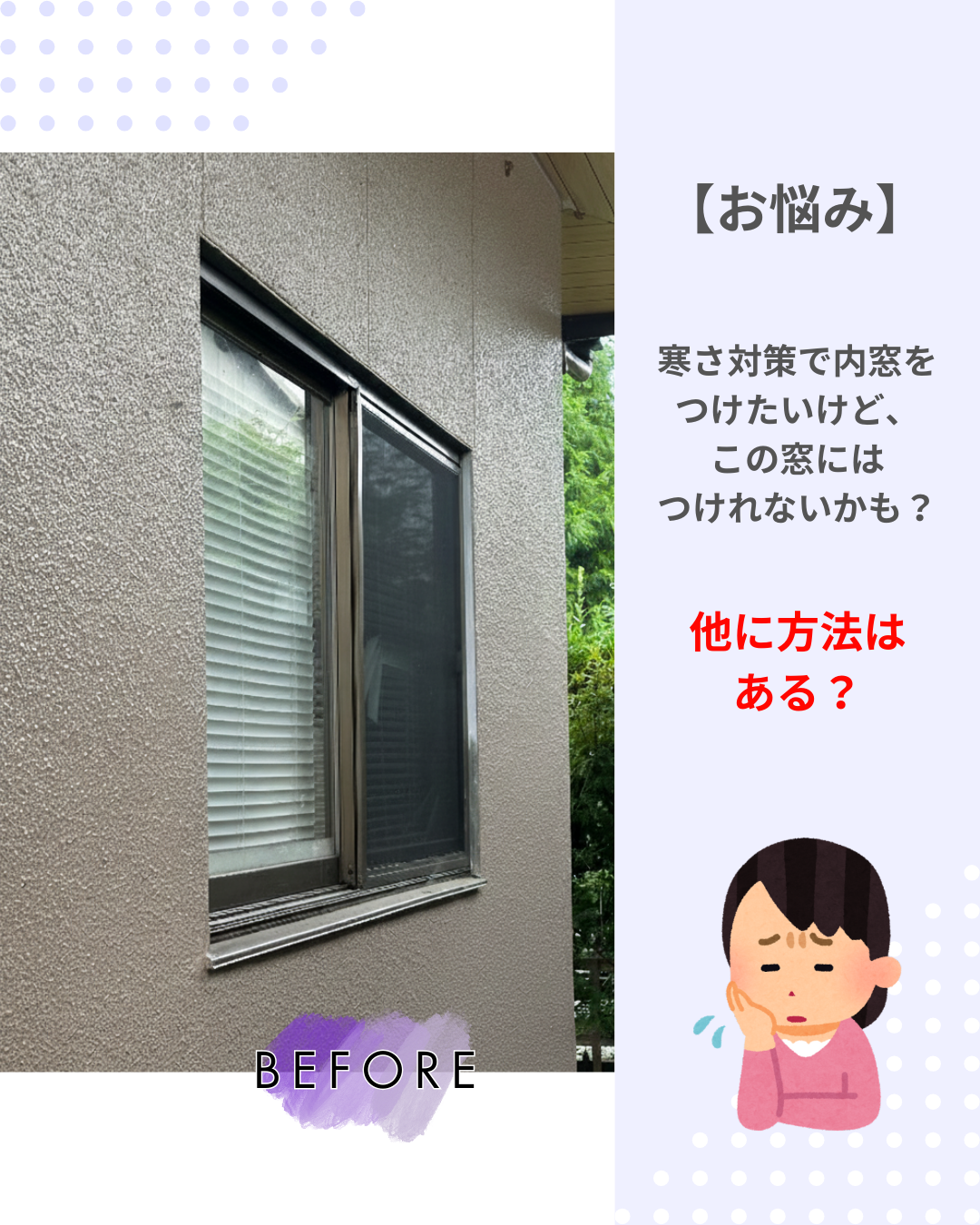 寒さ対策で内窓をつけたいけど、この窓にはつけれないかも?他に方法はある?