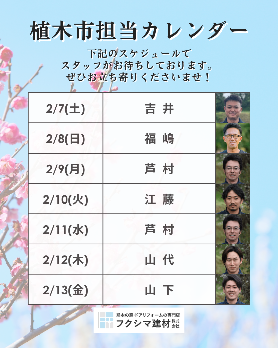 くまもと春の植木市🌸担当カレンダー【2/7(土)~2/13(金)】