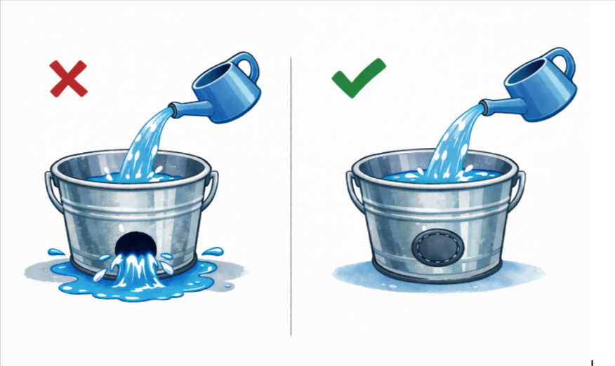 バケツから水が抜けている場合、まずは穴を防ぎたいものです。寒さ対策でも同様が良いと考えています。